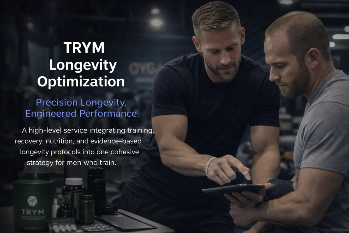 TRYM Longevity Optimization is a private, science-driven longevity and performance strategy designed for high-performing men who want to train harder, recover faster, think sharper, and age on their own terms.